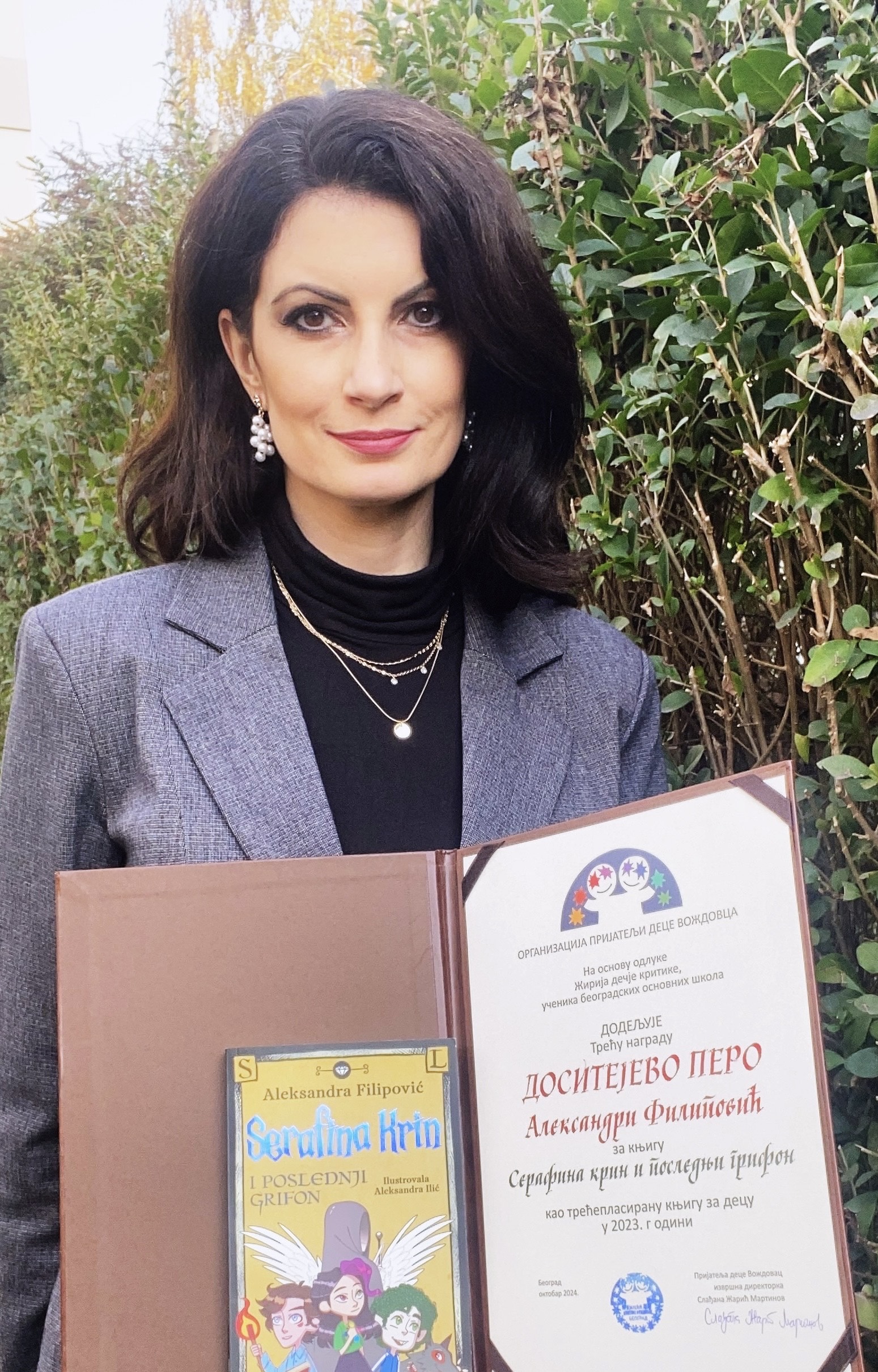 Nagrada dečje kritike „Dositejevo pero“ (treće mesto) za roman „Serafina Krin i poslednji grifon“.